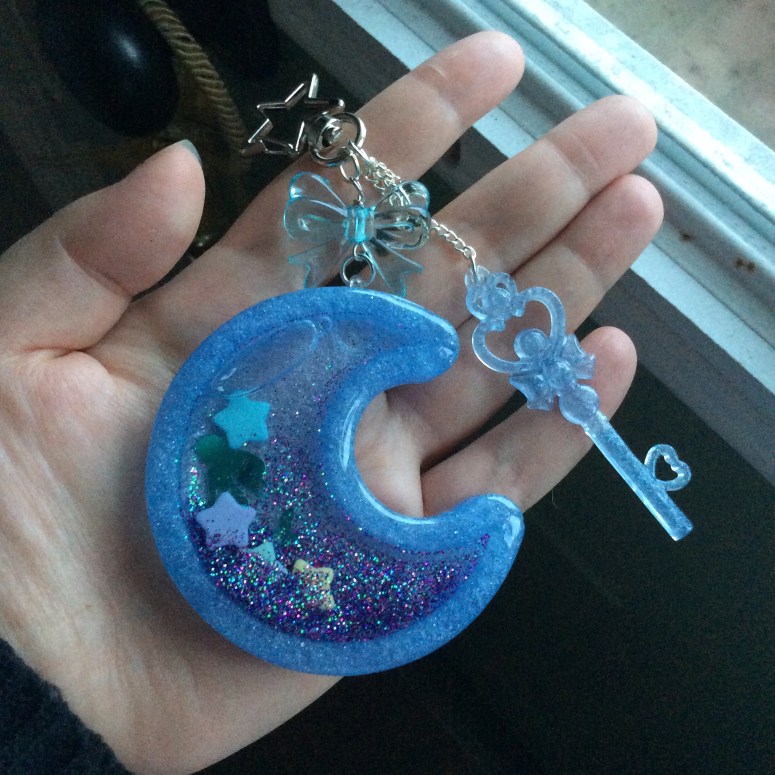 Today’s hand-crafted r sin creation is this pale blue Moon Shaker Keychain!